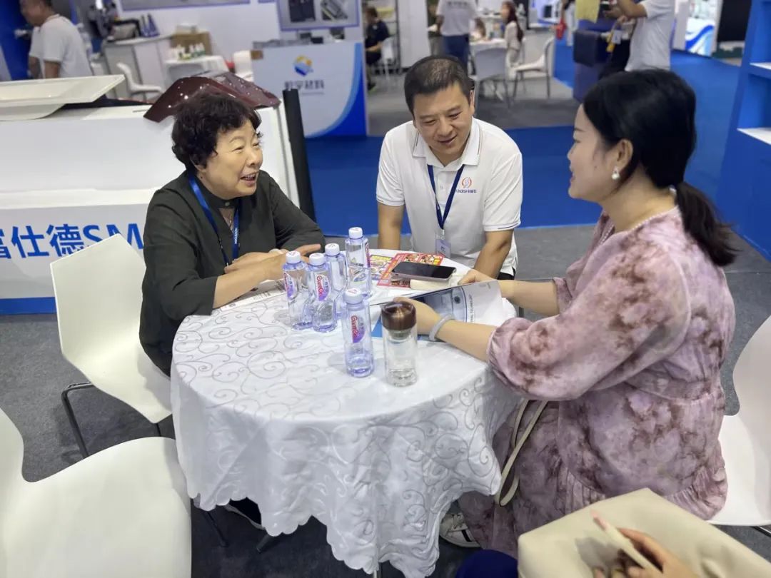 客戶對我們的高端SMC/BMC復(fù)合材料及其模壓結(jié)構(gòu)件興趣濃厚,連外國友人都被我們的產(chǎn)品深深吸引前來咨詢我司SMC產(chǎn)品,富仕德工作人員熱情接待每位顧客并詳細(xì)解答他們的問題。